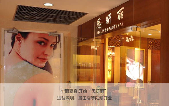 “走进思妍丽,享受先进专业的皮肤管理和身体管理。思妍丽始终坚持在美丽和健康两个领域,做值得消费者信赖的品牌”